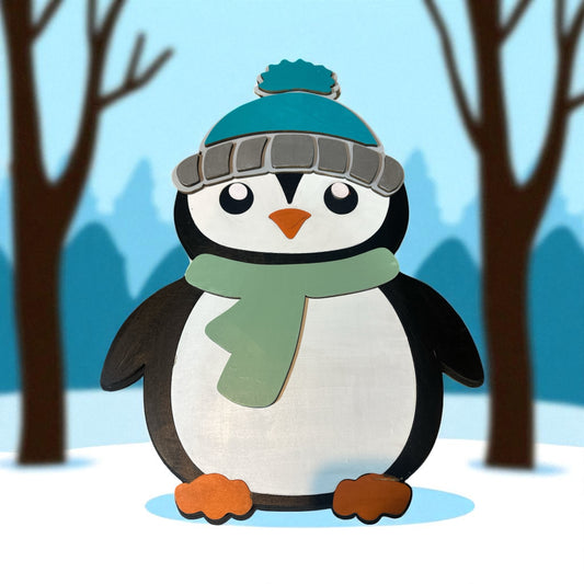 Handcrafted Wooden Winter Penguins - Adorable Pair in Hats & Scarves - Buy Each or the Pair - Festive Decor